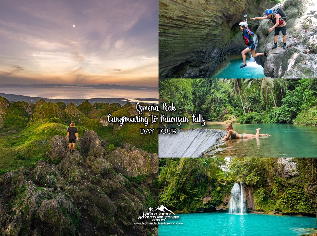 Our driver will pick you up from your hotel in the morning and take you to Dalaguete. You’ll get stunning 360-degree views of Cebu island when you reached the Osmeña Peak, the highest point of Cebu with an elevation of 1,013 meters above sea level. The mountain is a cluster of green jagged hills like a distorted version of Chocolate Hills in Bohol. The hike to the summit from the base is about 20-25 minutes only and fairly easy. After that, you’ll be given time to eat breakfast at your preferred restaurant in the area. Then, we’ll take you to Badian for your next exciting and adrenaline-pumping activity – the Canyoneering Adventure.
